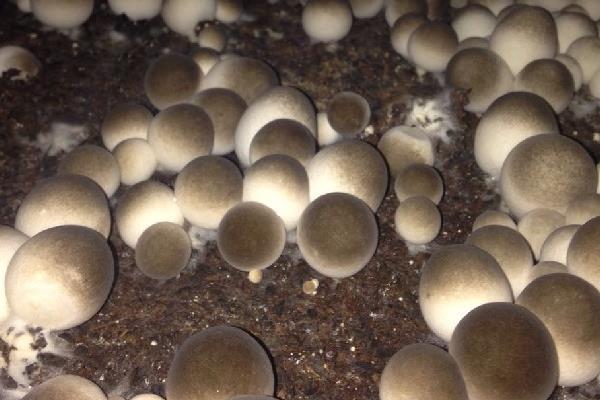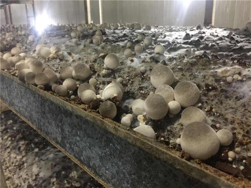 把已长满菌丝的菌筒脱袋后平摆在畦床内,每筒间距5 厘米,空隙用肥土填满,用竹片搭弓形棚覆压薄膜和草帘保湿遮光,膜内温度保持在30 - 34 摄氏度,湿度90 %-95 % ,菌筒覆土后,2 天菌丝即可长入土层,5 - 7 天土面。