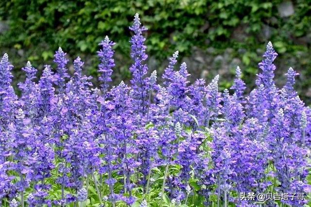 鼠尾草是唇形科、鼠尾草属一年生草本植物。茎直立,株高30到100厘米,植株呈丛生状,植株被柔毛。茎为四角柱状,且有毛下部略木质化。叶对生,长椭圆形,绿色叶脉明显,两面无毛,下面具腺点。须根密集。顶生总状花序,花序长达15厘米或以上;苞片较小,蓝紫色,开花前包裹着花蕾;花梗密被蓝紫色的柔毛。花萼钟形,蓝紫色,萼外沿脉上被具腺柔毛。