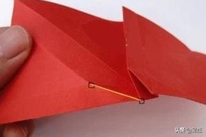 7、接着按照折纸图示中所示,在折纸模型中间部分的两点之间留下预折痕,这是局部折叠,所以在具体折叠的时候注意手的轻重和幅度的大小。剩下的三个对应相同部位也按照相同的方式进行折叠,同样是留下预折痕方便后面的折叠处理。