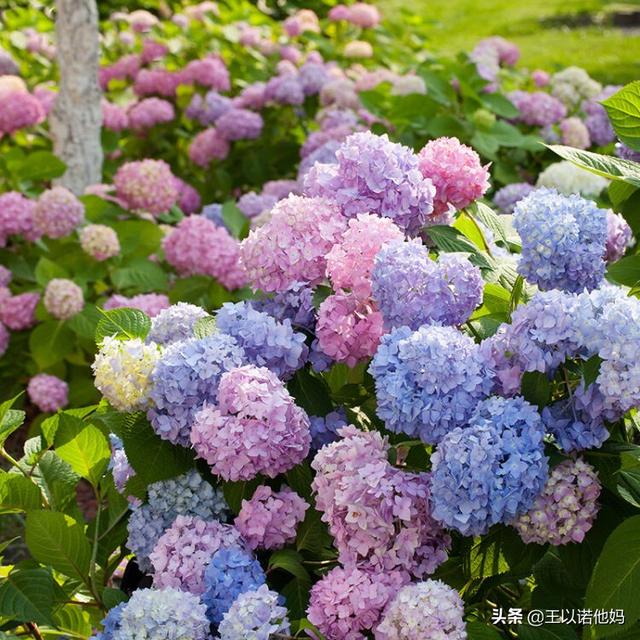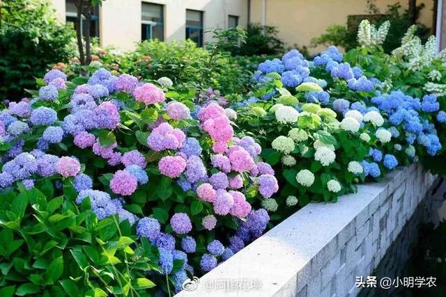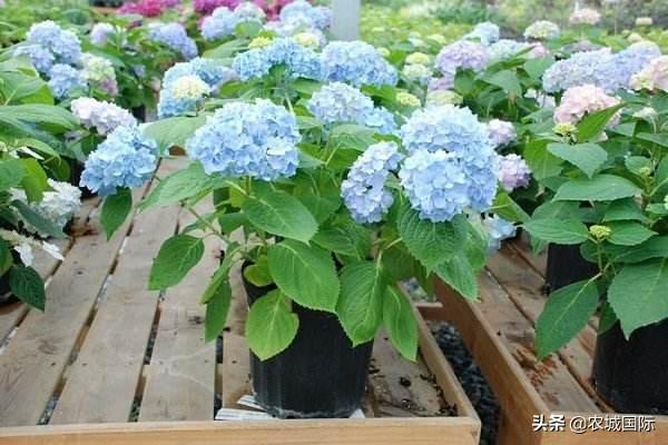 (1)绣球花喜酸性土,不耐瘠薄与盐碱土。在碱性土中生长不良,枝叶发黄,适宜疏松、肥沃、富含腐殖质的酸 性土壤。它的花色因受酸碱度的影响,可由白色变红色,由红色变成青蓝色。