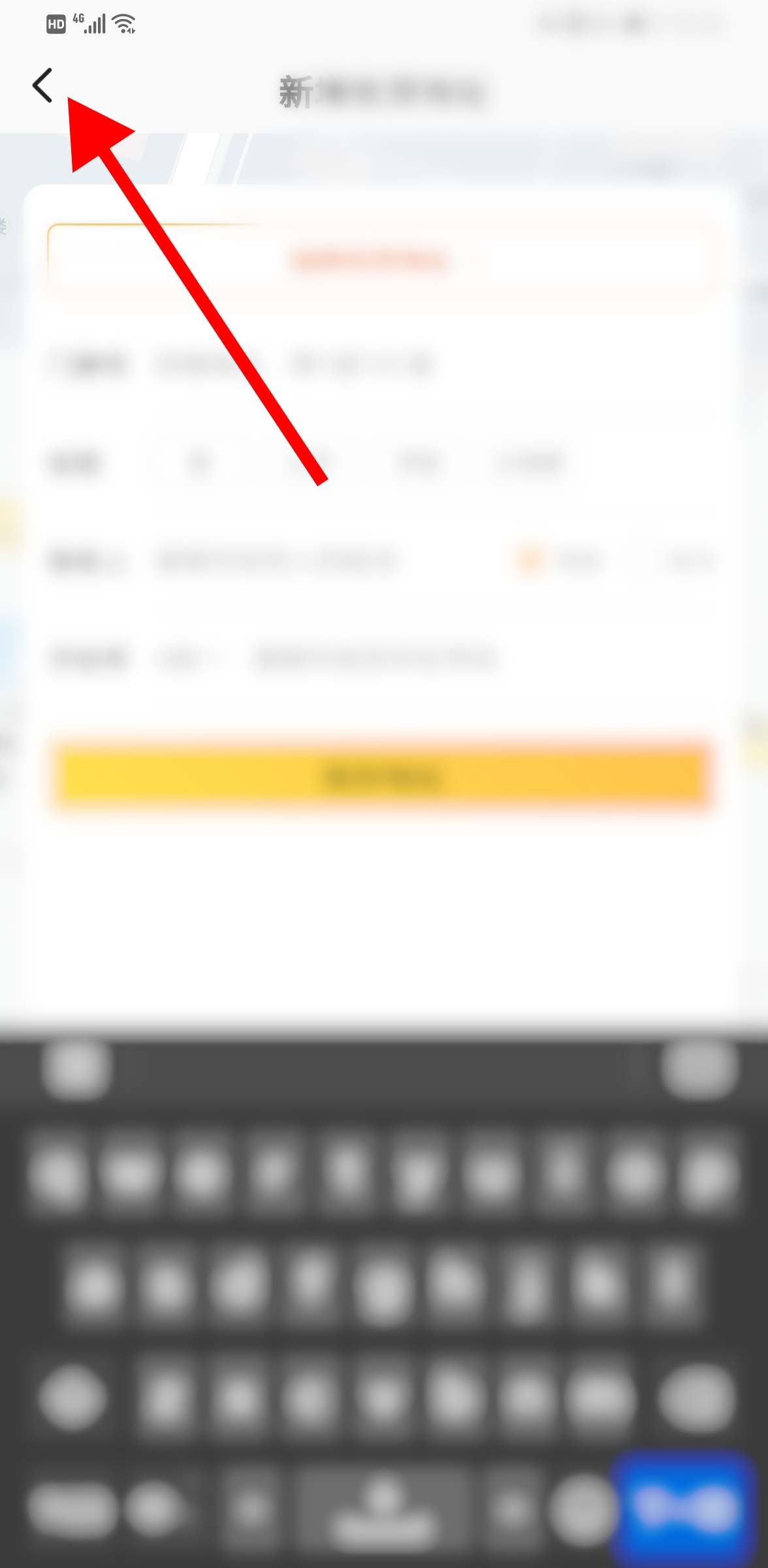 点完“保存地址”按钮之后,我们点击左上角的“返回”按钮,也就是下图红色箭头指示的位置