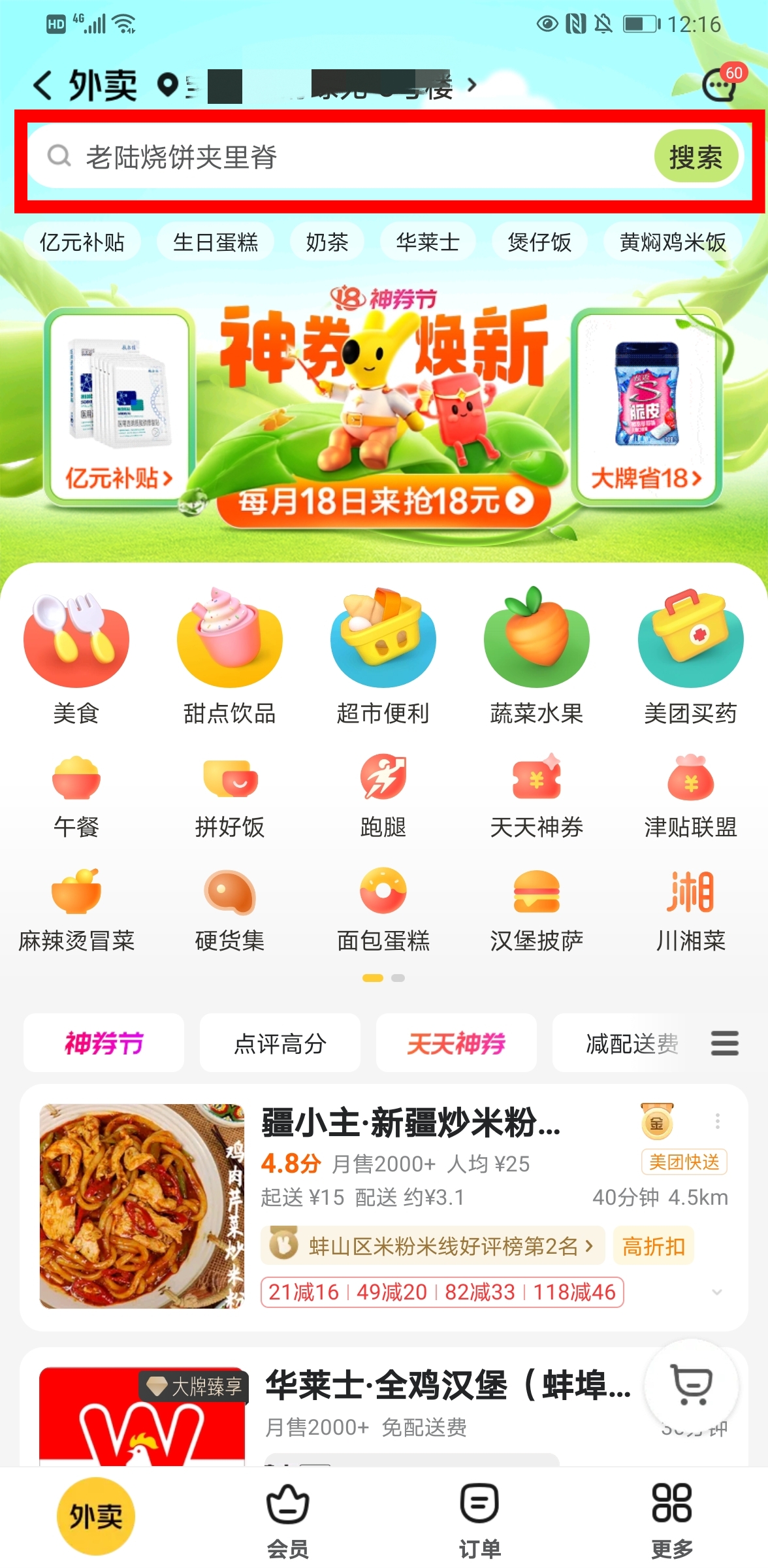 选择外卖选项。