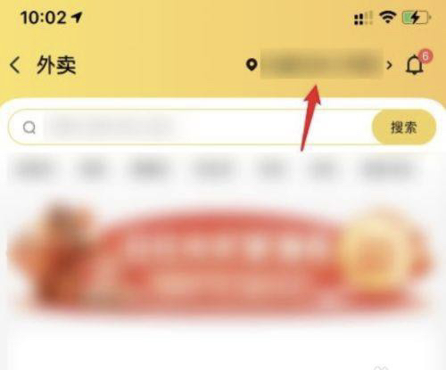 进入外卖页面之后,点击屏幕最顶端的地址链接。