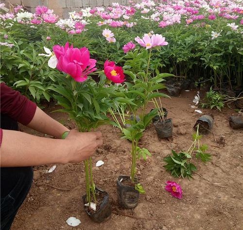 盆栽芍药的时候,先在花盆放入部分土壤,再放入苗木,填土压实即可。栽种之后必须要立即浇透水,让苗木吸足水分,土壤湿透,这样很快就会适应新的环境,恢复生长。