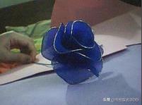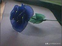 11、用胶带把叶子缠上去,看,一朵玫瑰就做好了。 金色的铁丝,蓝色的丝袜,其实这就是蓝色妖姬的做法了。