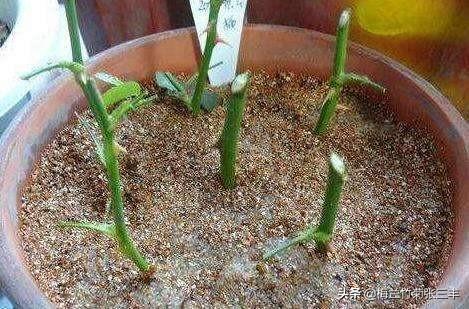 扦插月季枝条,我们可以选取2~3个芽点儿的月季枝条,在扦插的时候一定要注意扦插的方向,要注意扦插的时候,芽点儿要向上不能插反。