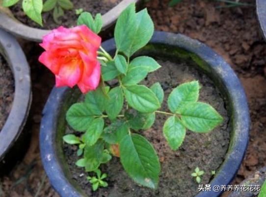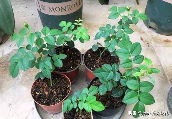 四、一旦月季长出了根之后,那么大家就可以将其上盆了。上盆所需的土壤建议大家选择疏松、透气的营养土。另外需要提醒大家的是,为了能够让成活的月季长的更好,大家应该先将上盆之后的月季放在阴凉通风的地方缓1周左右,等到其适应了此时的生活环境,然后再将其搬到太阳底下,需要记住这项工作不可太着急要慢慢来。
