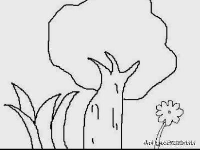 4、在小草的旁边画一颗树,先画出树干,在树干上画一些线条纹理。