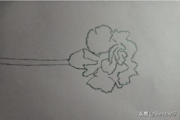 3.接着画出第二个第三个,占据整个花托,康乃馨的大概形状就出来了。
