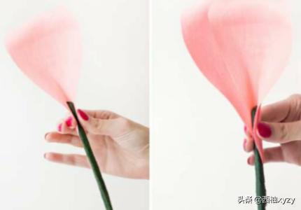 5、将一片小花瓣包在茎上,然后旋转枝干,继续用其他的小花瓣围绕枝干。