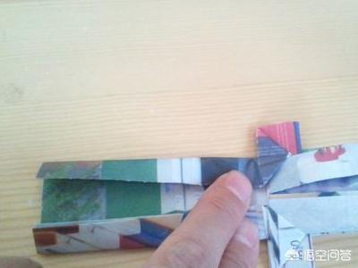 13、将右侧的长方形的头部,折入三角形中间,压住它不会翘起。