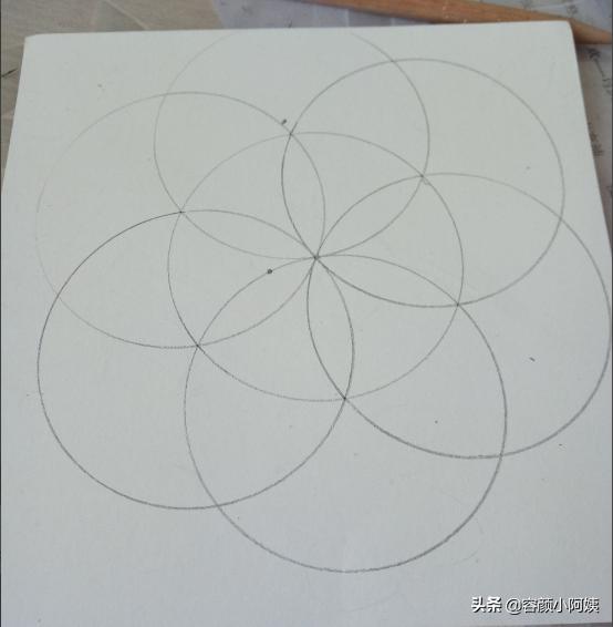 6、边缘一共画出六个圆就可以了