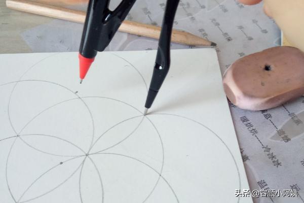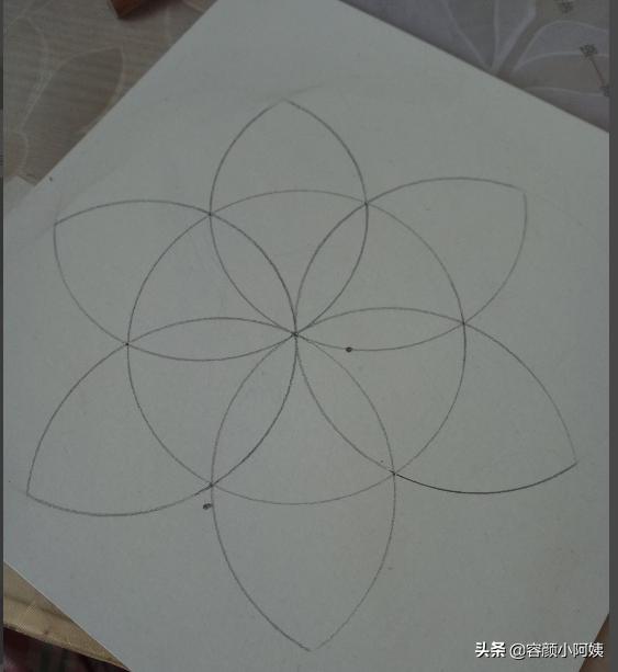 我们在小学数学里面,会学到圆的中心点我们称为圆O,还有圆的周长,圆的面积的计算,还有圆周率,圆的半径直径,我们也会在坐标里要求标出圆心点,其实用圆规画画也是一种艺术,可以画出无限的可能,比如说漂亮的花,步骤如下: