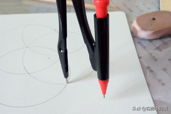 以一定的半径在纸上画一个圆,这个圆画的时候不要太用力,我们最后要擦掉