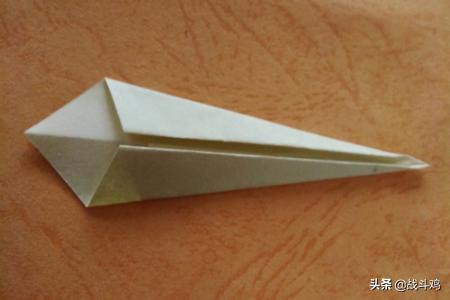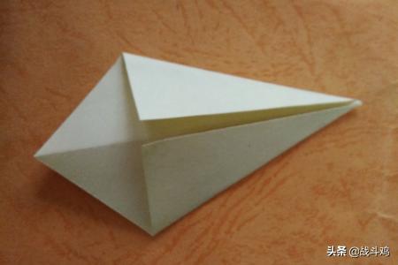 4、把尖尖的一边向内折。