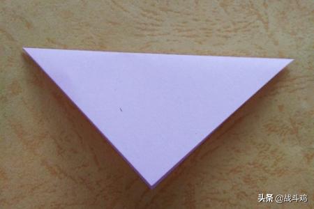 2、把三角形上面的角往下折,角要对准下面边的中间。