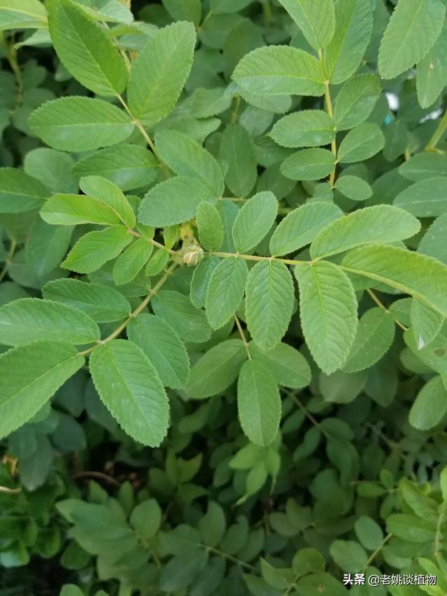 第一,看叶片:月季花叶片表面亮绿光滑的。
