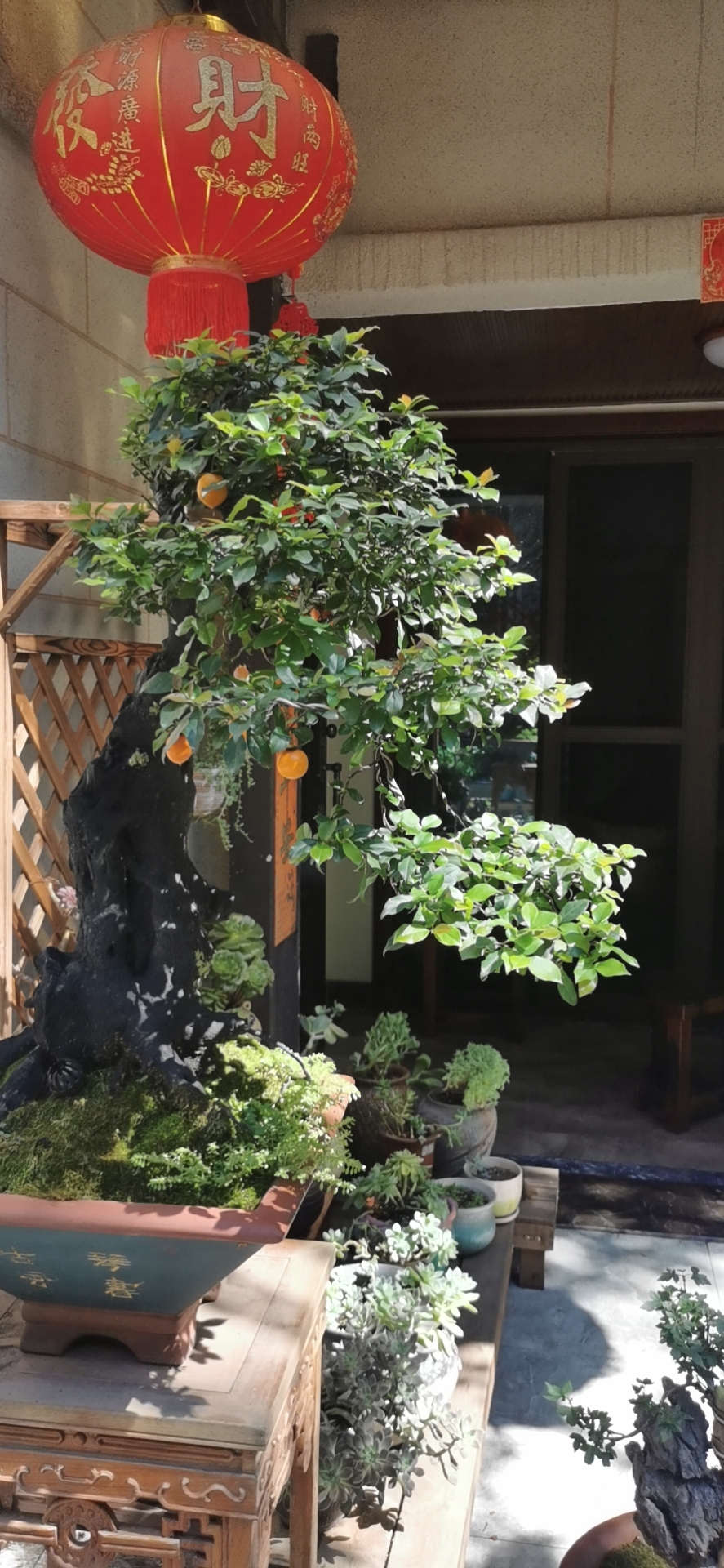这盆金弹子,是经过了几次修剪后的形状,以顶端优势向下修剪,一层一层的稍作隔断,以粗杆为主向左边延伸枝条,修好后,放在大门边,就像伸手迎接客人的手