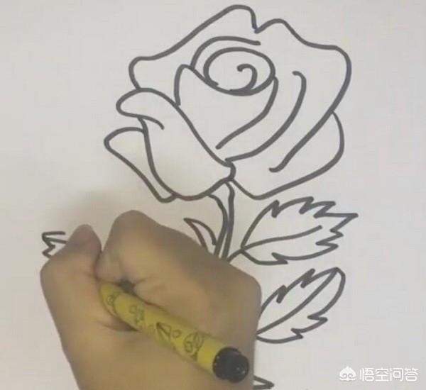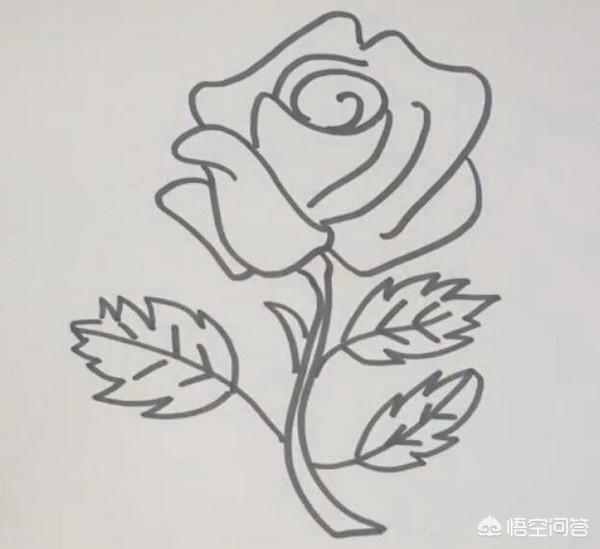 7、最后在花叶上描出叶脉,蔷薇花就完成了。