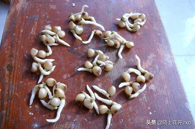 将种子用40℃左右的水泡30小时左右,捞出放凉。处理过的种子大约17-20天生出胚根。选择细沙,清洗后消毒,平铺在容器里,将种子发芽的芽眼朝下,间隔四厘米左右排在沙面上,上面再铺一层细沙,不要太厚,薄薄一层就可以,大约要等一个月左右的时间长出子叶。