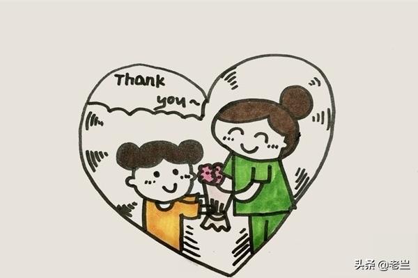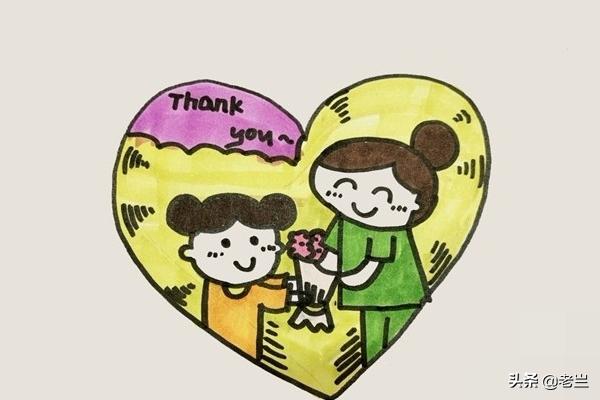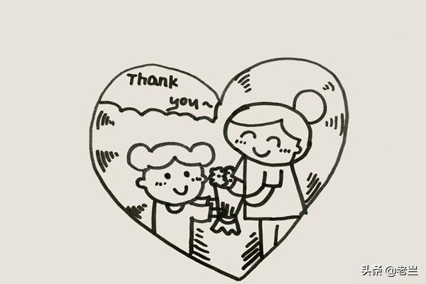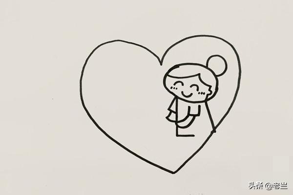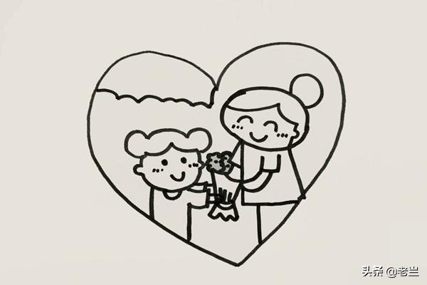 1、首先画出一个大大的爱心,在爱心里的右侧画出一个妈妈的形象。