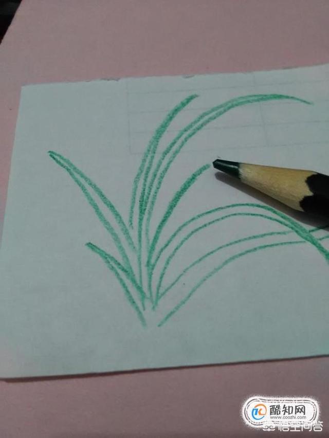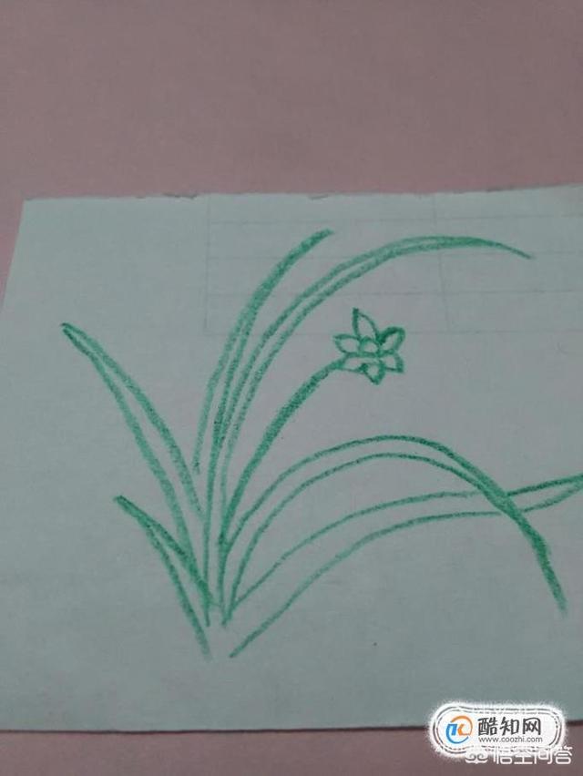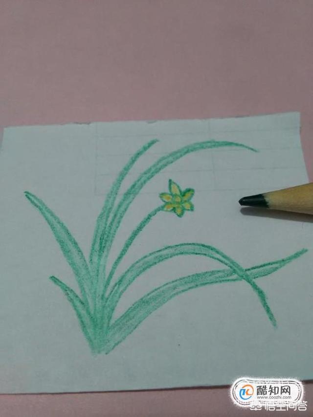 再用绿笔将所有的叶子涂成绿色,兰花就画完了。